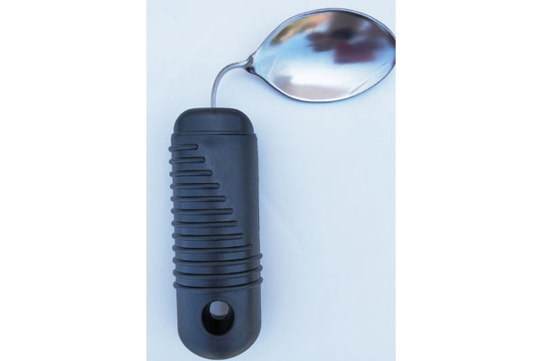Cubiertos compuestos por tenedor, cuchara y cuchillo con mango ancho y blando, de gran comodidad para el usuario.