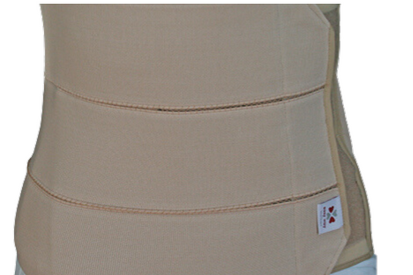 Faja abdominal de 3 bandas fabricada en tejido de algodón y tiras elásticas.