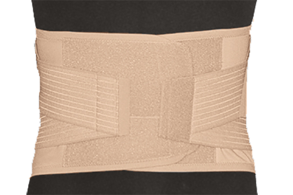 Faja lumbosacra de tejido elástico transpirable. Su diseño con dos bandas cruzadas en la parte posterior, hace que se adapte mejor al cuerpo.
